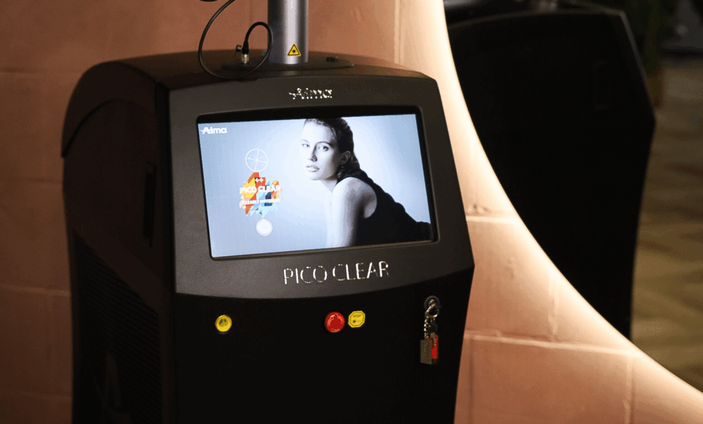 Tijdens de behandeling worden de pigmenten met korte pulsen behandeld met onze Pico Clear laser van Alma.
