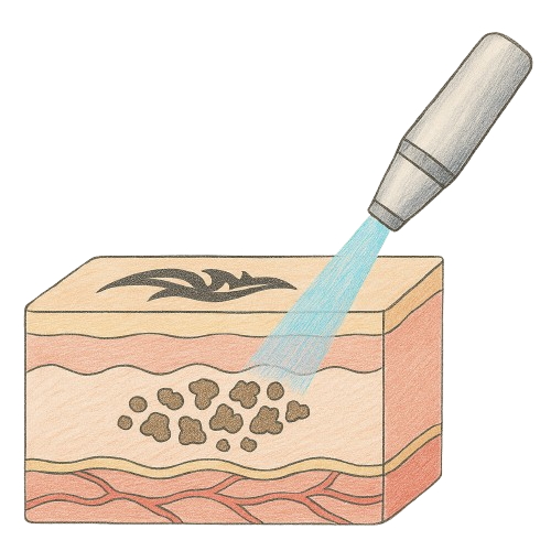 Nadat je akkoord ben met de behandeling starten we met het schoonmaken van de huid en eventuele koeling om de pijn te verminderen.